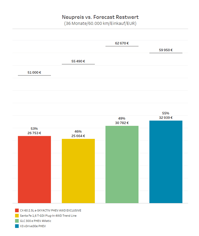 Der Mazda CX-60 hat im Vergleich zu seinen wichtigsten deutschen Premium-PHEV-Konkurrenten einen niedrigeren Listenpreis mit einem guten Preis-/Ausstattungsverhältnis. Mazda gilt außerdem als sehr zuverlässige Marke, was durch die kürzlich verlängerte Sechs-Jahres-Garantie unterstrichen wird.